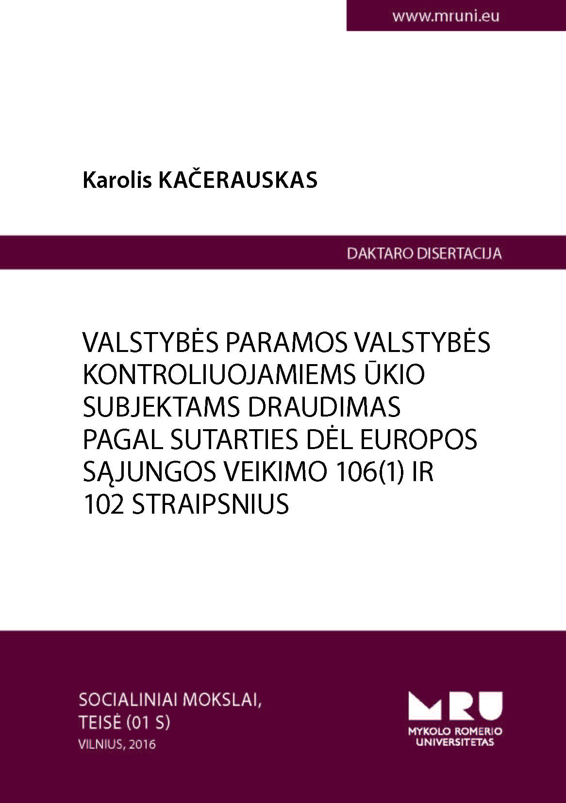 Valstybės dalyvavimas rinkos santykiuose per savo kontroliuojamas įmones visuomet kėlė įtampą santykiuose tarp verslo ir valstybės. Nors valstybė iš principo turi teisę vykdyti ūkinę veiklą ir konkuruoti su privačiais rinkos dalyviais, tačiau tai darydama valstybė susiduria su reikšminga paskata panaudoti savo reguliacinius įgaliojimus sukuriant verslo aplinką, kuri būtų išskirtinai naudinga valstybės kontroliuojamiems ūkio subjektams. Disertacijoje nagrinėjamas tokią valstybės paramą valstybės kontroliuojamiems ūkio subjektams draudžiantis teisės instrumentas – SESV 106(1) str. ir 102 str. numatytas reikalavimams susilaikyti nuo veiksmų, kurie galėtų sumažinti Europos Sąjungos steigimo sutartyse numatyto draudimo piktnaudžiauti dominuojančia padėtimi veiksmingumą. Tyrimo metu buvo nustatyta, kad galiojančioje teisėje nėra pakankamo aiškumo, kokie konkrečiai teisiniai elementai turėtų būti įrodyti konstatuojant SESV 106(1) str. ir 102 str. įtvirtintą pažeidimą. Dėl šios priežasties, tyrimo metu buvo siekiama atskleisti tokio teisės pažeidimo teisinės sudėties elementų turinį. Šiuo atžvilgiu tyrimo metu pirmiausiai buvo atskleista SESV 106(1) str. ir 102 str. įtvirtinto pažeidimo istorinė raida ir teisinė prigimtis, identifikuoti teisinės sudėties elementai, atskleistas atskirų elementų turinys, apžvelgtos specifinės veiksmų formos, kuriomis valstybė gali sumažinti draudimo piktnaudžiauti dominuojančia padėtimi veiksmingumą bei padaryta išvada dėl valstybių narių teisinių galimybių suteikti išimtines teises. Tyrimo pabaigoje buvo padarytos išvados dėl teisinių elementų, kurie turi būti įrodinėjami konstatuojant SESV 106(1) str. ir 102 str. įtvirtintą pažeidimą, bei suformuluotos rekomendacijos dėl veiksmų, kurių būtina imtis siekiant pašalinti teisinį neapibrėžtumą ir efektyvesnį šio draudimo taikymą.