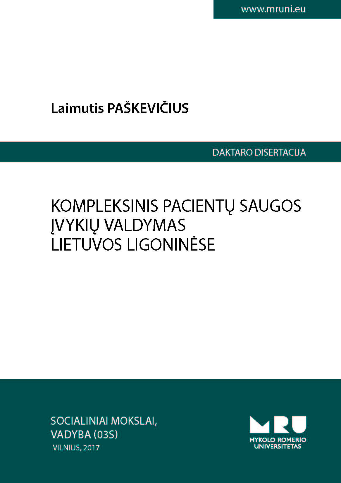 Pacientai kreipiasi į ligonines pagalbos, tačiau kas dešimtas jų patiria žalą jose įvykus nepageidaujamiems įvykiams. Disertacijoje iškelta ir išnagrinėta pacientų saugos įvykių valdymo ligoninėse problema, nustatyta, kad stokojama vadybinio-organizacinio mechanizmo, kurio pagrindu ligoninėse plėtojamos pacientų saugos įvykių valdymo sistemos efektyviai ir veiksmingai įgyvendintų geriausia patirtimi pagrįstas, tarptautiniu ir nacionaliniu lygmenimis rekomenduojamas pacientų saugos strategijas, programas, priemones. Tyrimo tikslas – sukurti ir pagrįsti ligoninėms kompleksinės pacientų saugos įvykių valdymo sistemos modelį (Modelis). Pirmoje disertacijos dalyje nagrinėjama Modelio sukūrimo teorinė problematika, pateikiamos pacientų saugos judėjimo patirties pagrindu suformuotos pamatinės nuostatos Modeliui kurti. Antroje dalyje aptariama atliktų empirinių tyrimų (kiekybinio ir dviejų kokybinių) metodinė ir metodologinė problematika, jų organizavimas. Trečioje dalyje pateikiami tyrimų rezultatai, jų pagrindu sukonstruotas Modelis, apibūdinama jo struktūra ir funkcijos, nagrinėjamas jo veiklos kontekstas, adaptacijos iššūkiai. Remiantis tyrimų rezultatais, pateikiamos išvados ir rekomendacijos.