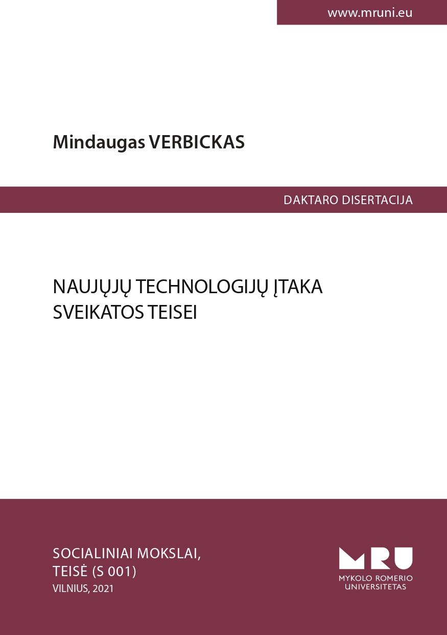 Šiuolaikinėje sveikatos priežiūroje žmogaus teisės į sveikatą dalimi tampa teisė dalytis mokslo pažangos laimėjimais ir nauda. Mokslo pažanga bei taikomoji veikla (technologijos) skirtos tam, kad būtų ugdoma žmogaus asmenybė, didinama pagarba žmogaus teisėms ir pagrindinėms laisvėms, tačiau sveikatos srityje ši pažanga susijusi tiek su nauda, tiek ir rizikomis. Todėl neišvengiamai teisę lenkiantis technologijų progresas jai kelia vis naujų iššūkių, suponuojančių mokslinių tyrimų poreikį, kurie teisinio naujųjų technologijų ir sveikatos sąveikos reguliavimo iššūkių kontekste ieškotų harmoningos šių sričių sąveikos galimybių. Šioje disertacijoje keliamas tikslas nustatyti ir įvertinti sisteminį naujųjų technologijų poveikį sveikatos teisei remiantis pozityvios sveikatos samprata. Įgyvendinant uždavinius moksliniame darbe pagrindžiama, kad su naujų techninių galimybių integracija į sveikatos sritį susiję teisinio reguliavimo iššūkiai gali būti sprendžiami pozityvios sveikatos sampratą naudojant kaip teorinį pagrindą, pagal kurį dinamiškumas, holistiškumas ir asmens įtrauktis bei jų pagrindu besiformuojantys principai yra inovatyvaus, pagrindines žmogaus teises užtikrinančio naujųjų technologijų poveikio teisiniam reguliavimui kriterijus.