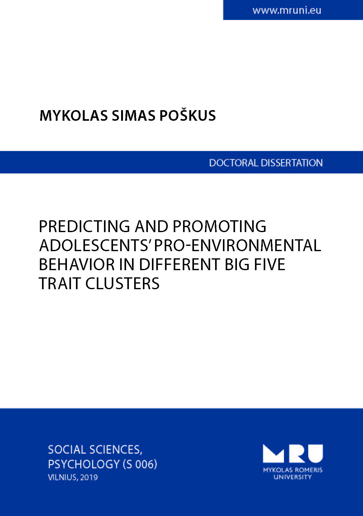 The dissertation investigates youth’s pro-environmental behaviors through a holistic personoriented perspective and adopts evolutionary psychology as a unifying metatheory for understanding and explaining behavior. The aim of the dissertation is to investigate how predictive models of pro-environmental behavior function in different groups of individuals clustered by their personality traits and how evolutionarily tailored persuasive normative stimuli affect individuals in these groups. The dissertation concludes that: the classical model of the Theory of Planned Behavior functions sufficiently well without additional expansions; individuals with different patterns of Big Five personality traits form beliefs about pro-environmental behaviors differently and therefore predictive models function differently for these clusters as well; evolutionarily tailored normative stimuli are effective in promoting pro-environmental intentions, but their effectiveness is different for individuals with different patterns of Big Five personality traits; conventional correlational approaches are not sufficient enough to fully understand the role of innate traits in pro-environmental behavior because traits do not function independently of one another.