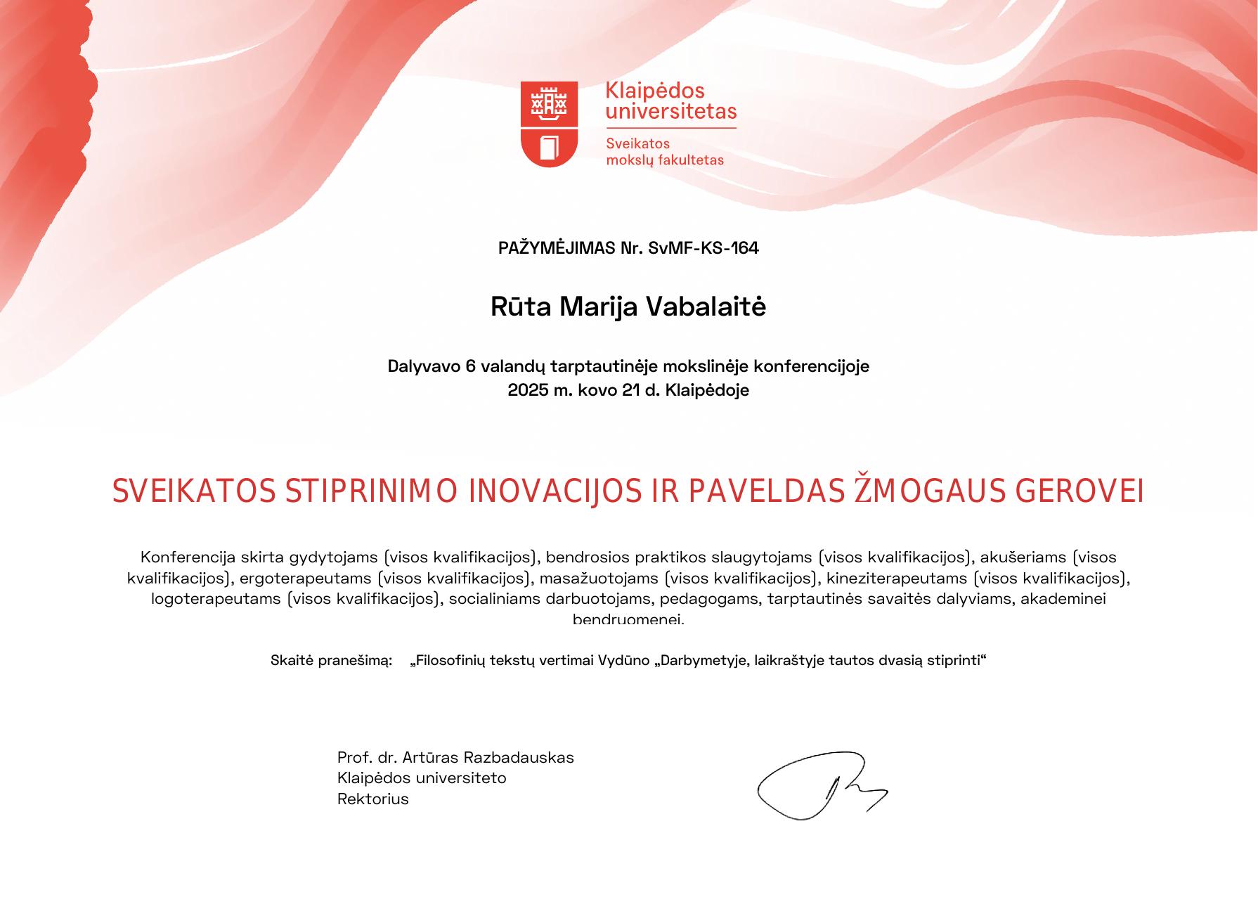 Vabalaitė, Rūta Marija